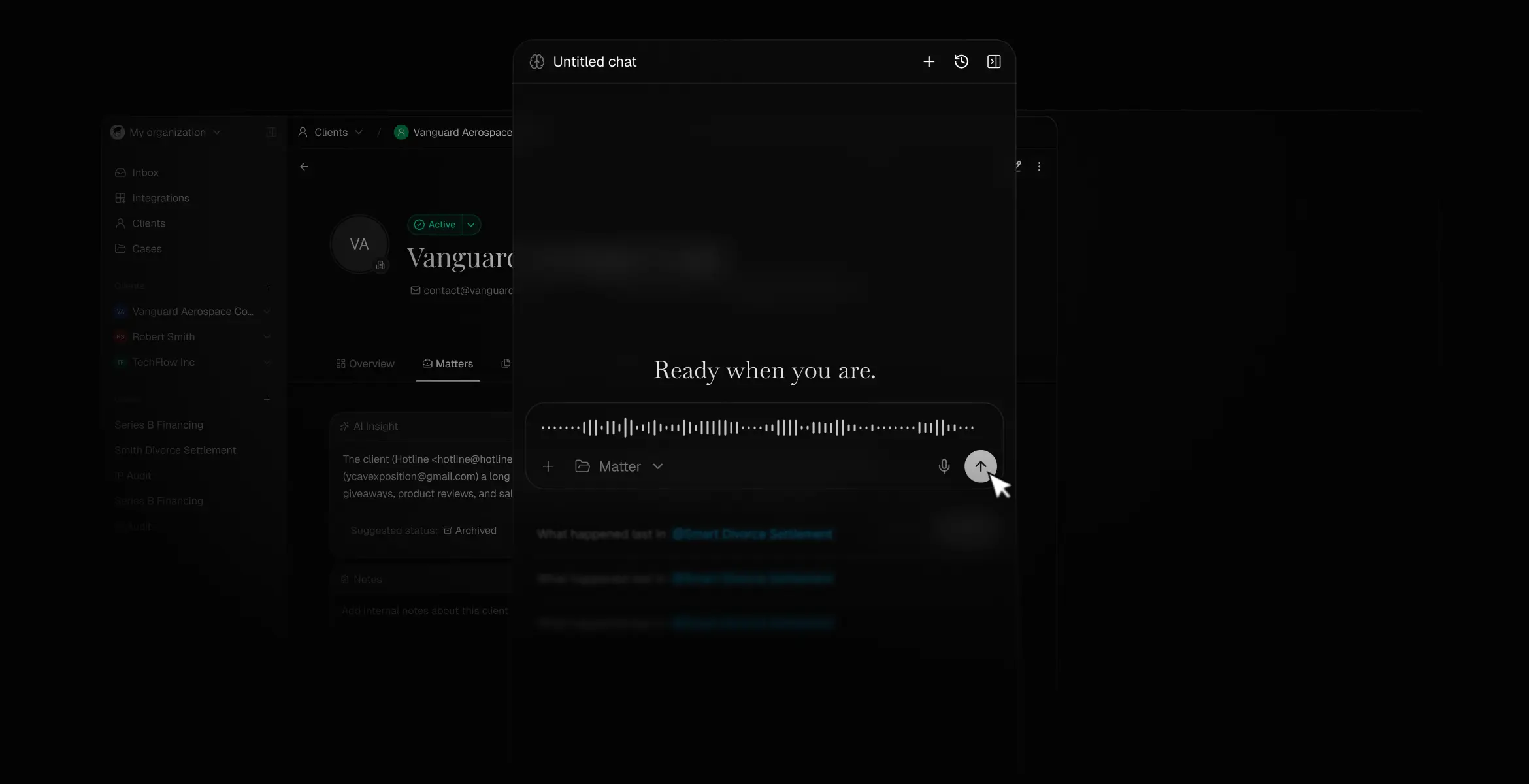 Referent runs the pre-matter workflow for you. It collects context, organizes details,